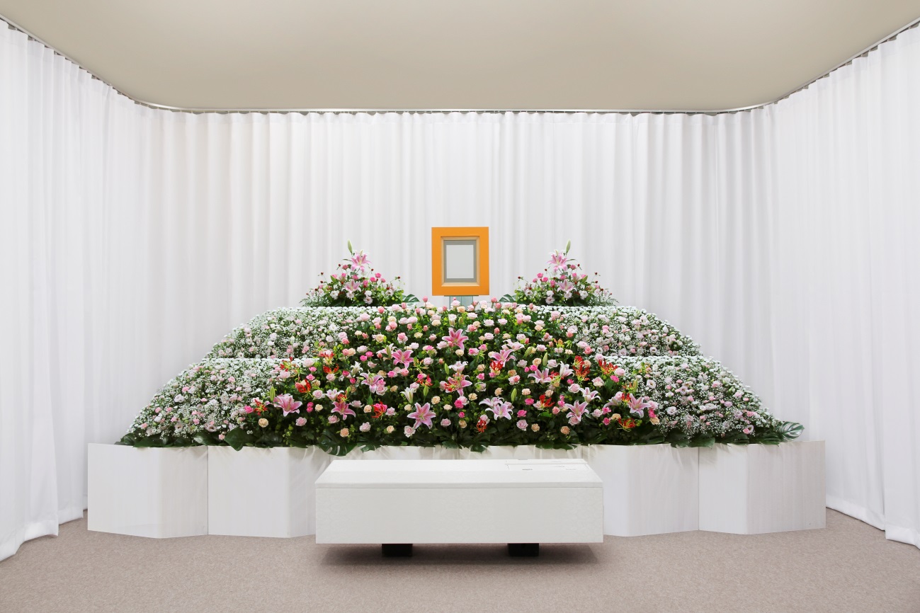 愛泉葬祭 > 参考お見積もり例 > ■国分寺市/きわだ斎場/生花祭壇6号/親族30名,一般100名