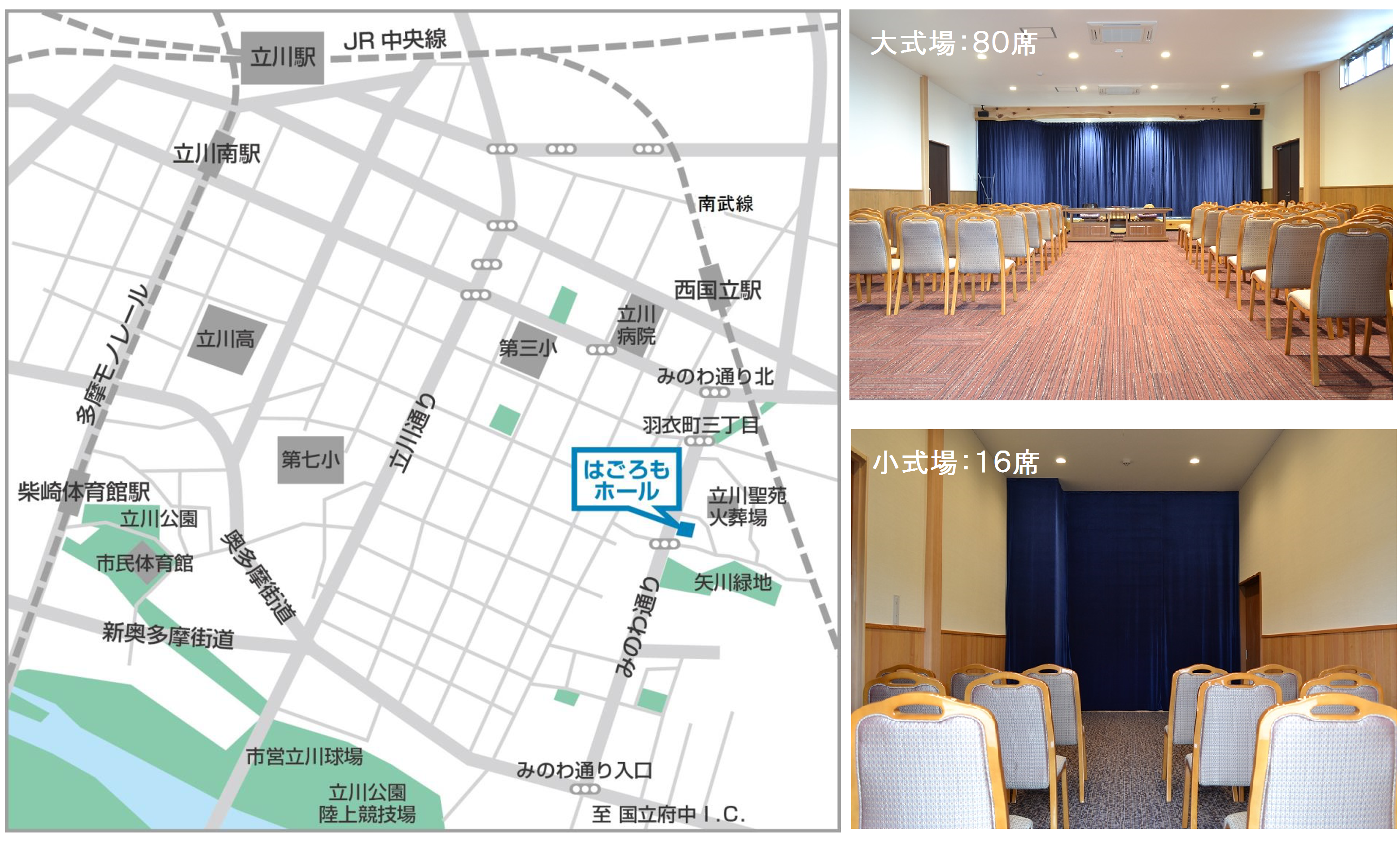 愛泉葬祭 > おすすめ斎場情報 > はごろもホール / 立川市の民営斎場